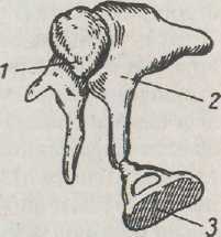 В барабанной полости помещается цепь слуховых косточек (рис. 10), состоящая из молоточка, наковальни и стремени. Молоточек имеет головку, рукоятку и два отростка (короткий и длинный).
