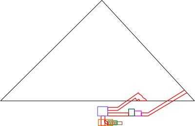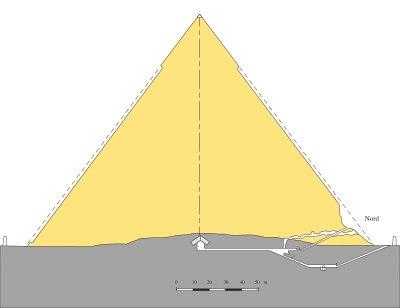 6. Истинный вход в пирамиду, как и вход Аль-Мамуна находится на северной стороне пирамиды. На высоте примерно 17 метров от основания. По видимому, он был замаскирован облицовкой и открылся при ее обрушении после землетрясения 1162 года.