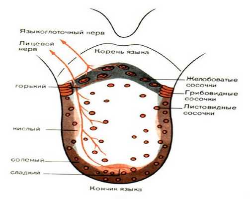 Рис.23. Расположение вкусовых рецепторов.