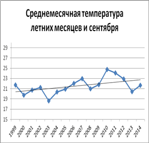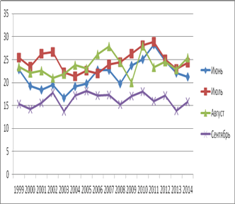 Для уточнения предварительных данных был проведен анализ температурного фона в летние месяцы (рис. 2).