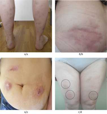 В 16-летнем возрасте была консультирована в ЦНИКВИ. По заключению патоморфолога имеются явления неспецифического панникулита с наличием инфильтратов из лимфоидных клеток, гистиоцитов, плазмоцитов, фибриноидные изменения, васкулиты. Патоморфологическая картина не противоречит клиническому диагнозу глубокой КВ.