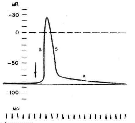 На записи ПД выглядит как кратковременный пик (рис. 44), имеющий несколько фаз.