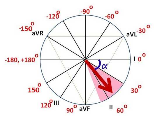 В норме в отведениях I, II, aVF, V2-V6 зубец P всегда положительный. В отведениях III, aVL, V1 зубец P может быть положительным или двухфазным (часть зубца положительная, часть — отрицательная). В отведении aVR зубец P всегда отрицательный.
