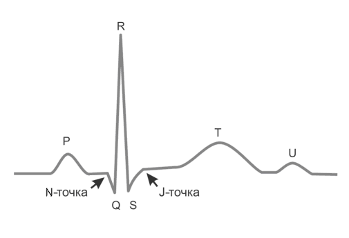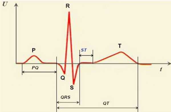 На графике ЭКГ различают сегменты, зубцы и интервалы. Сегментом называют отрезок прямой линии (изолинии) между двумя соседними зубцами. Зубцы обозначаются латинскими буквами P, Q, R, S, T — в порядке их появления слева направо. Они бывают отрицательные (Q или S; отрицательными также бывают зубцы T или P), т. е. ниже изолинии, либо положительные (T, P, R,) — выше изолинии. Интервал состоит из зубца (комплекса зубцов) и сегмента. Таким образом, интервал = зубец + сегмент. Наибольшее значение для диагностики имеют сегменты P-Q и S-T, а самые важные интервалы — это P-Q и Q-T.