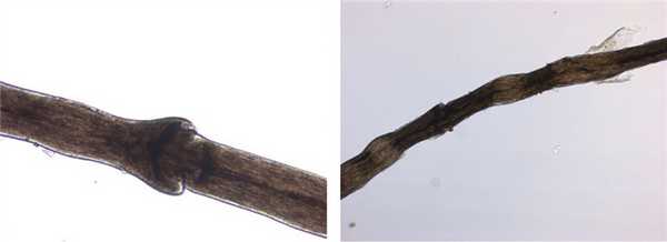 Рис. 1. Бамбукообразные дистрофические изменения волос.
