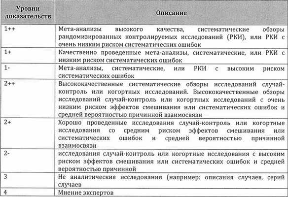 Рейтинговая схема для оценки силы рекомендаций (Таблица 2)