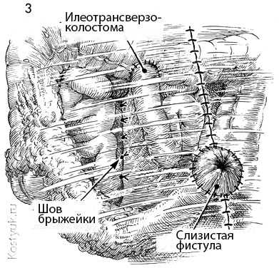 Илеотрансверзо-анастомоз с выведением слизистой фистулы