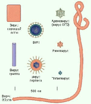 По размерам вирусы бывают от крупных (до 400 нм) до мелких (20-30 нм).