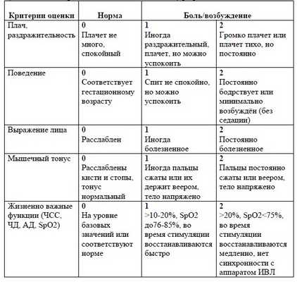 Таблица 3. Адаптированная шкала оценки боли у новорождённого N-PASS (Neonatal Pain, Agitation and Sedation Scale, 2000) [16].