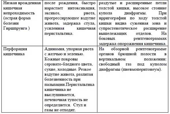 • ППП: продолжительность зависит от динамики состояния ребенка, восстановления пассажа по кишечнику, появления стойкой тенденции к улучшению или нормализации лабораторных и рентгенологических данных.