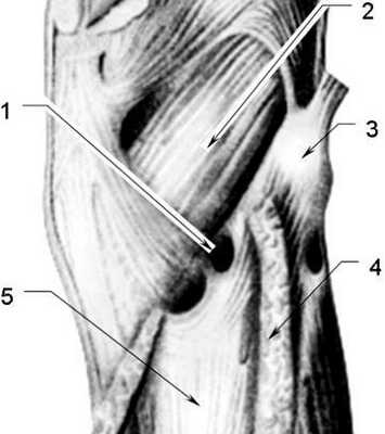 медиальная - длинный сгибатель пальцев.