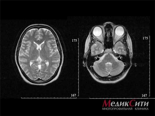 - МРТ головы. Магнитно-резонансная томография дает возможность наиболее точно определить уровень и характер поражения оптических волокон и внутриглазных мышц, выявить локальные участки кровоизлияния.