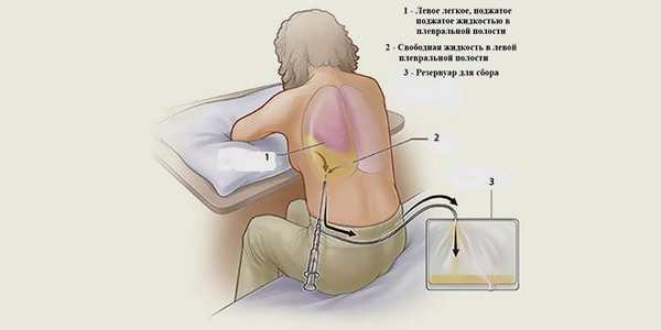 При экссудативном плеврите с большим количеством выпота прибегают к его эвакуации путем проведения плевральной пункции (торакоцентеза) или дренирования. Одномоментно рекомендуется эвакуировать не более 1-1,5 л экссудата во избежание сердечно-сосудистых осложнений (вследствие резкого расправления легкого и обратного смещения средостения). При гнойных плевритах проводится промывание плевральной полости антисептическими растворами. По показаниям внутриплеврально вводятся антибиотики, ферменты, гидрокортизон и т. д.