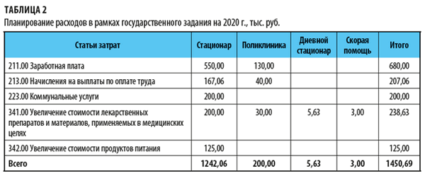Планирование бюджета медицинские организации начинают с составления государственного задания (по нормативам Минздрава России). Государственное задание составляется на каждый вид медицинской помощи отдельно.