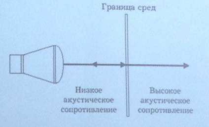 При прохождении ультразвука через ткани на границе сред с различным акустическим сопротивлением и скоростью проведения ультразвука возникают явления отражение, преломление, рассеивание, поглощение.