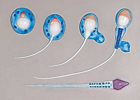 Время созревания спермиев занимает от 68 до 75 дней. За этот срок из сперматогонии — клетки-предшественника, образуются 4 зрелых сперматозоида. За время, сколько зреет сперма, клетка приобретает хвост, необходимый для движения, и акросому, в которой содержится набор ферментов для растворения оболочки яйцеклетки; сбрасывает цитоплазматическую каплю, чтобы сэкономить место, и ожидает эякуляции в извитых канальцах яичка.