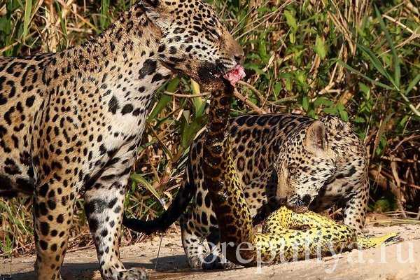 Леопарды поймали и убили анаконду
