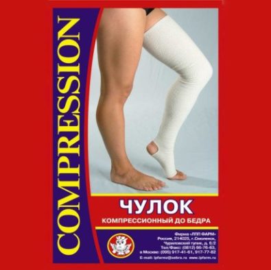 Инструкция по применению: надевать чулок утром, лежа, постепенно натягивать его, разглаживая складки.