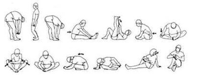 При выполнении растяжки в положении сидя с вытянутыми вперед ногами или при наклонах вперед от бедер будьте очень осторожны. В этих положениях главное — не перенапрягаться.