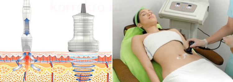 Коррекция проводится на специальном аппарате, который позволяет подконтрольно разогревать дерму и подкожно-жировую клетчатку до температуры 38-45 градусов.