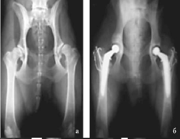 Учитывая небольшой процент осложнений и полноценное восстановление функции конечности, эндопротезирование имеет показания и практическое применение при дисплазии и артрозе тазобедренного сустава у собак.