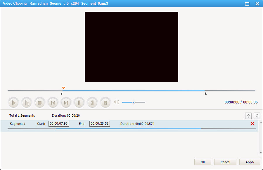 Input File Formats Supported Windows Media (AVI, WMV, ASF, DVR-MS, MS-DVR) MOV/MP4 File (MOV, MP4, 3GP, 3G2, M4V, QT, 3GP2, 3GPP, MPEG4) Real Media (RM, RMVB, RV) Rash Video (FLV, F4V) Matroska Video (MKV, WEBM) AviSynth Scripts (AVS) High Definitiion Video (M2TS, MTS, TOD) MPEG-1 Video (M1V, MPE, MPG, MPV, DAT, MPEG, MPEG1) MPEG-2 Video (M2V, MPE, MPG, MPV, VOB, MPEG, MPEG2, M2P, MOD) MPEG Transport Stream Video (TS, TP, M2T, TRP) Divx Video (DIVX) OGG Media (OGM, OGV, OGG) DVD-VR Video (VRO) Nullsoft Stream Video (NSV) IOS Image (ISO) Other Video Formats: DV, AMS MP3 (MP3), WAV (WAV), WMA (WMA), Flac (FLAC), AC3 (AC3), AAC (AAC), M4A (M4A, M4R), OGG (OGG), AMR (AMR) Other Audio Formats: AU, AIF, AIFF, AIFC, ADTS, ALAW, AMR, APC, APE, CAF, DTS, GSD, GSM, MKA, MLP, MMF, MP1, MP2, MPEG3, MPC, MP+, M2A, NUT, OMA, QCP, RA, RR and more. Output Audio Formats Supported MP3 Audio (*.mp3), AIFF Audio (*.aiff), APPLE Loseless Audio (*.m4a), MPEG-4 Audio (*.m4a) MP3 Audio (*.mp3), MPEG-4 Audio (*.m4a), WMA Audio (*.wma) MP3 Audio (*.mp3), MPEG-4 Audio (*.m4a), WAVE Audio (*.wav), WMA Audio (*.wma) MP3 Audio(*.mp3), WMA Audio(*.wma) Monkey's Audio(*.ape), Free Lossless Audio(*.flac), WAVE Audio(*.wav) MP2 Audio (*.mp2), MP3 Audio (*.mp3), OGG Vorbis Audio (*.ogg), AAC Audio (*.aac), AC3 Audio (*.ac3), AIFF Audio (*.aiff), Apple Losseless Audio (*m4a), Monkey's Audio (*ape), SUN AU Audio (*au), Digital Surround Audio (*dts), Free Lossless Audio (*flac), MPEG-4 Audio (*m4a), WAVE Audio (*wav) System Requirements Microsoft® Windows XP, Windows Vista, Windows 7, Win 8 1GHz Intel/AMD processor or above 256MB RAM (512MB or above recommended) 100MB space for installation How to Convert Audio/Video to other Audio Formats?