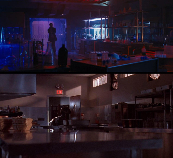 9.1 Это тоже не придирка, а просто интересный момент. Сцена, где Дженсон пытается найти в лаборатории Томаса и Терезу жутко напомнила аналогичную сцену с "Парка юрского периода" где в роли Дженсона выступал динозавр, который так же искал детей.