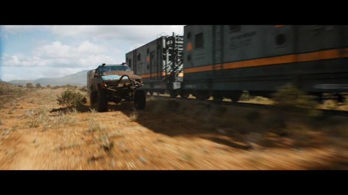 7. В третей части фильма начался совсем фантастический "Форсаж" и "Безумный Макс". Начальная сцена с нападением сопротивления на поезд "ПОРОКа" выглядит как мега надуманный боевик. Ни одна пуля не попала ни в одного из организации "Правая рука", но зато специально обученные солдаты "ПОРОКа" дохнут как мухи.