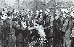 О проведении опыта на себе всерьез думал и Луи Пастер, имеющий обыкновение превращать демонстрацию своих вакцин в эффектное шоу. Например, демонстрируя действие созданной им вакцины против сибирской язвы, Пастер привил 48 овец в присутствии ученых, врачей, представителей духовенства, сотни фермеров и толпы журналистов. Казалось, спектакль удался на славу, но через некоторое время овцы стали гибнуть из-за низкого качества разрекламированной вакцины. Мэтр бактериологии Роберт Кох писал о методах Пастера, что они годятся "для рекламирующей себя торговой фирмы, но наука должна отнестись к ним с самым суровым осуждением". Неудача не обескуражила Пастера, и вскоре он приступил к разработке вакцины против бешенства. Опыты на животных проходили успешно, и склонный к театральным эффектам Пастер стал думать о том, чтобы организовать испытание вакцины на себе. "У меня,— писал он своему старому другу,— большой соблазн начать опыт с самого себя: привить себе бешенство и затем задержать его последствия, ибо я начинаю чувствовать абсолютную уверенность в результатах". Однако дальше деклараций практичный Пастер не пошел и испытал вакцину на покусанном бешеной собакой ребенке, которому все равно уже терять было нечего. Вакцина оказалась действенной.
