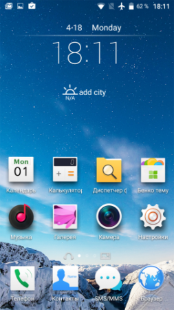 В смартфоне установлен Android 5.1, установлен некий лаунчер, который последнее время идет на подавляющем большинстве китайских смартфонах.