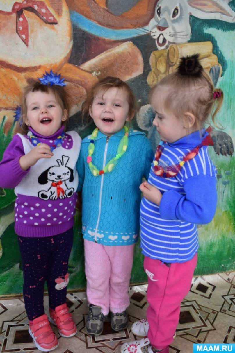 Изготовление бус из ткани и чеснока для детей младшей группы.