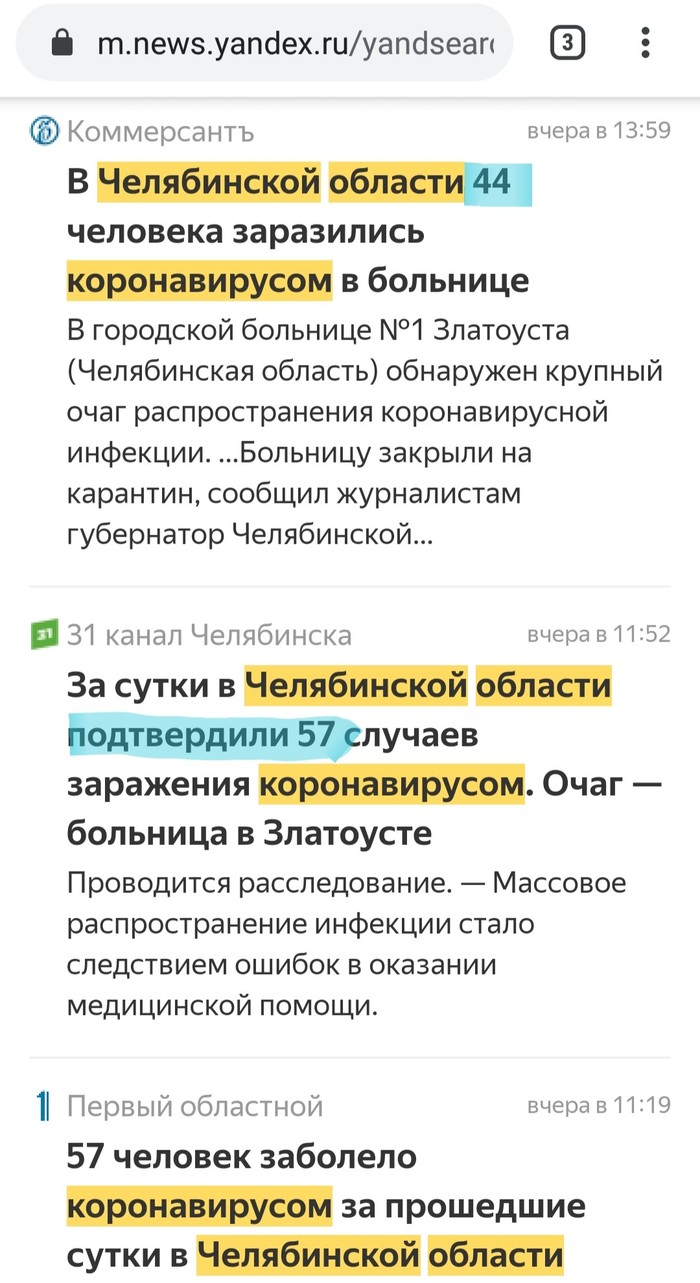 Прям там же в яндексе, перейдя в новости региона мы видим информацию про 57 официально подтверждённых.