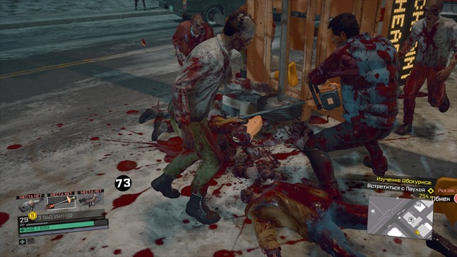 Вместе с таймером исчезли и сколько-нибудь интересные второстепенные миссии: главной задачей будет зачистка территории. Забудьте о побочных заданиях из оригинала — вроде тех, в которых мы спасали японских туристов, не знающих английского, и находили сектантов в местном кинотеатре. Теперь мы просто уничтожаем зомби, дабы расчистить путь выжившему. Увлекательные битвы со свихнувшимися жителями Уилламета больше не обособляются в отдельную фазу и теряются на фоне глобальной мясорубки. С увеличением арсенала Фрэнка и возможностью создавать мощное оружие уже в самом начале боссы перестают быть серьезной угрозой.