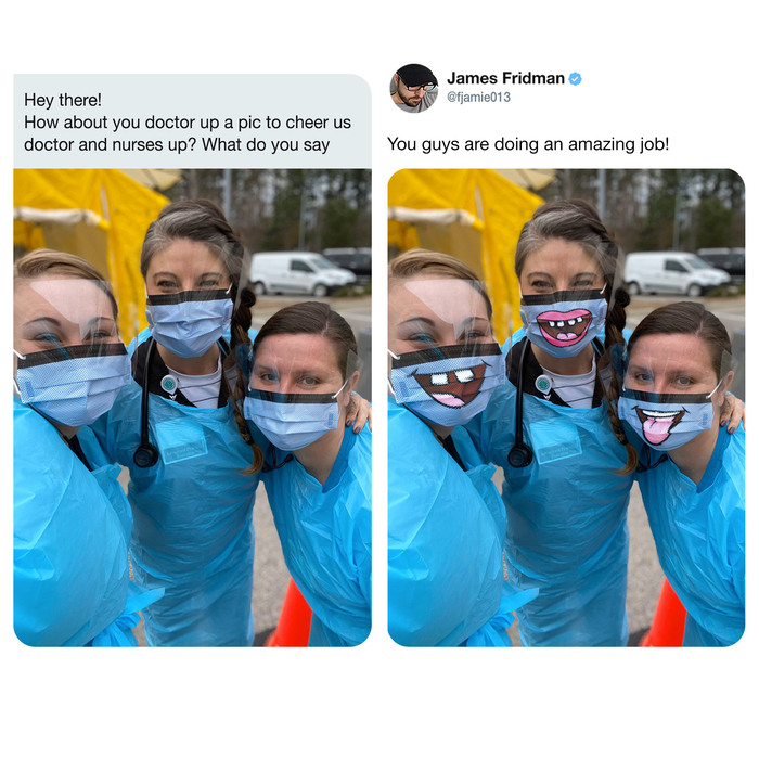 Умельцы компании Tangible Creative, занимающейся 3D-печатью и промышленным дизайном, перевели технику на изготовление защитных масок для больниц Нью-Йорка. Уже произведено и направлено медработникам порядка 3000 масок, ещё около 15000 на подходе.