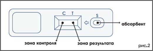 2. Положить тест-кассету на ровную горизонтальную поверхность так, чтобы окошко результатов было вверху. (См. рис. 2)