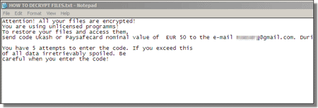 Victims will be asked to send proof of payment to mentioned address. When the attacker confirms the payment, he will reply with the decryption code. There is a danger in losing all your files for entering wrong code in the decryption box. The Trojan will drop a text file on each infected folders. The file is a clean and it contents are nothing but a warning.