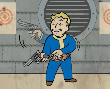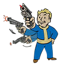 Пистолеты пригодятся вам только в начале игры. Если вы нашли пистолет с глушителем, то это прекрасное оружие для скрытных атак. Единственный плюс пистолетов в игре это малое количество AP, которое они потребляют за один выстрел в VATS.