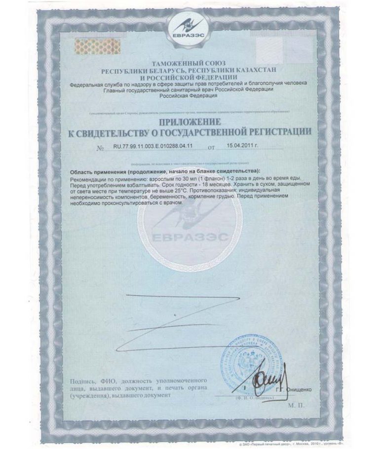 Курс применения: людям с ослабленным организмом необходим курс 5-10 дней, курс 10 -20 дней рекомендуется часто длительно болеющим людям, при серьезных заболеваниях и осложнениях необходим курс 30 дней. Перерыв между курсами приема эликсира – 3 дня.