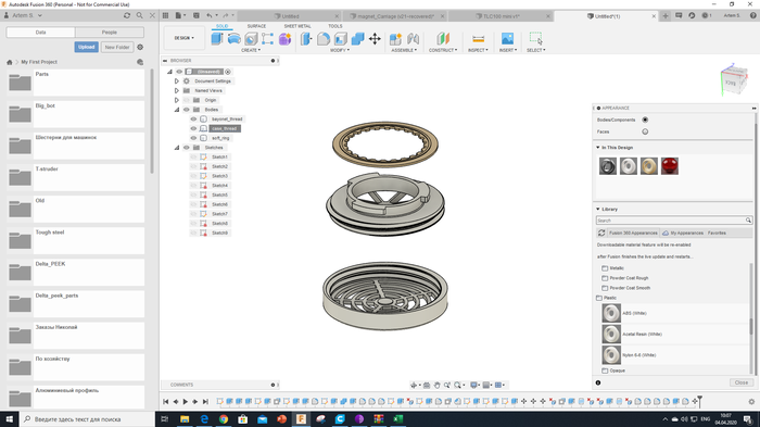 Дополнительно было смоделировано уплотнительное кольцо по привалочной поверхности между корпусами маски и фильтр-блока. Печатать его необходимо из мягких пластиков — Bflex, TPU, можно из SBS.