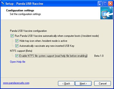 При установке Panda USB Vaccine отметьте галочками все пункты настройки