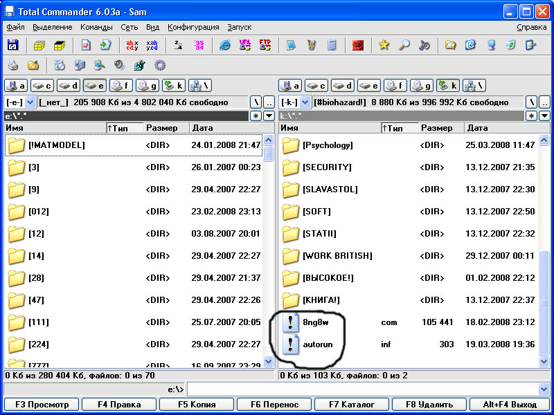 То есть autorun.inf сообщает нам, что истинным корнем зла является AUTORUN.EXE. Теперь без колебаний можно уничтожить и autorun.inf и autorun.exe. Кстати, на месте autorun.exe может стоять совершенно другой файл. Например, setup.exe.