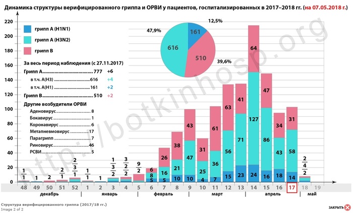 - Добавлены данные по структуре выявленных инфекций и удельному весу выявленных случаев гриппа среди госпитализированных взрослых больных за 10-ю неделю 2020 года (02.03. – 08.03.2020 г.)