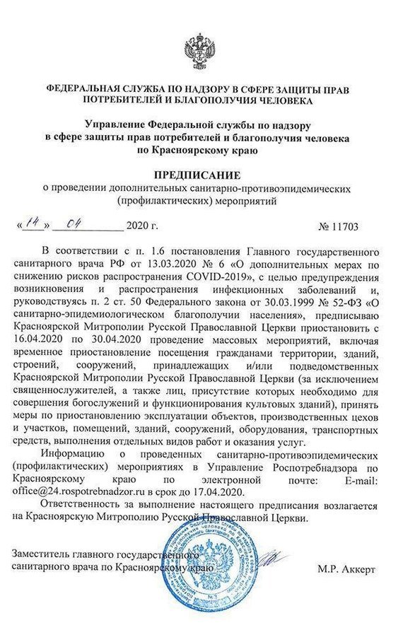 Красноярский Роспотребнадзор запретил массовые мероприятия в храмах на 2 недели