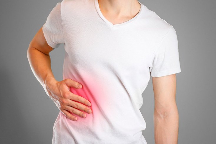 - Тяжесть в животе. Обычно с правой стороны, под рёбрами.