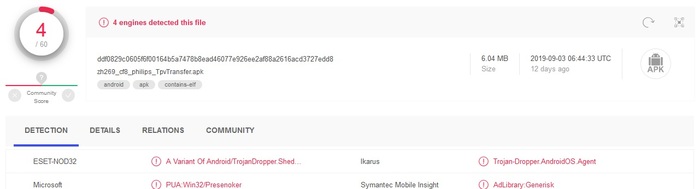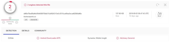 libcheckperlib_so (android.downloader.4076) и Data transfer.apk ( trojan.android.shedun)