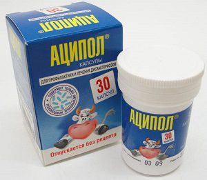 Аципол – пробиотик, который представляет собой лиофилизированную смесь живых лактобацилл и кефирных грибков, которые предварительно были инактивированы путем прогревания. В состав препарата входят живые ацидофильные лактобактерии штаммов NK1, NK2, NК5, NK12.