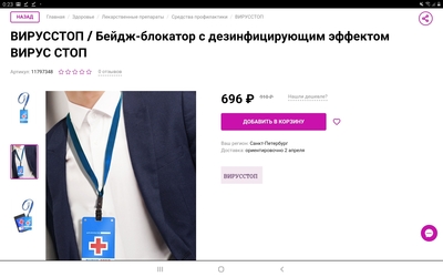 👎 Продавцы, наоборот, пишут, что блокатор вирусов клинические испытания прошел. Но НИИ Пастера, который их якобы проводил, утверждает, что это не так.
