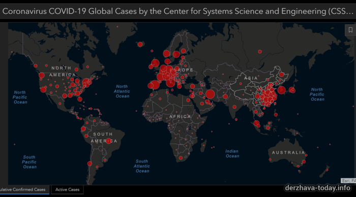Онлайн трансляция заражений коронавирусом по всему миру
