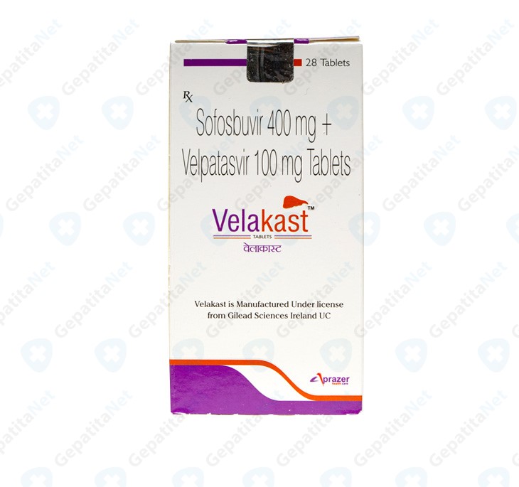 Велакаст отличается пангенотипностью. При этом эффективность противовирусной терапии не зависит от применения рибавирина, интерферона, ингибиторов протеаз NS3/4А. Помимо активности в отношении всех разновидностей гепатита С, допустимо применение медикамента и при декомпенсированном циррозе в составе комплексной терапии.