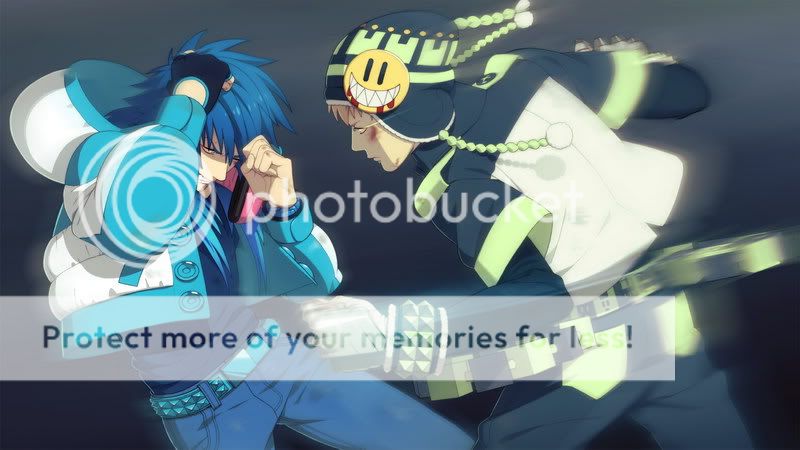 Есть вариант, что в Oval Tower Вирус и Трип избивают Аобу и забирают его себе. Дело в том, что они, оказывается, из печально известной Morphine. Точнее - они и есть Morphine. Но они всегда были фанатами Аобы. И после инцидента с Лаймом 10 лет назад Вирус подправил Аобе память, чтобы Тое не нашел и не вернул его. Сейчас парочка тоже не намерена отдавать Аобу Тое, она уже полгода развлекается с ним сама.